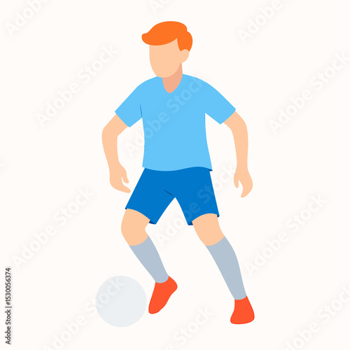 Flat Style Full Body Soccer Player Dribbling the Ball Illustration