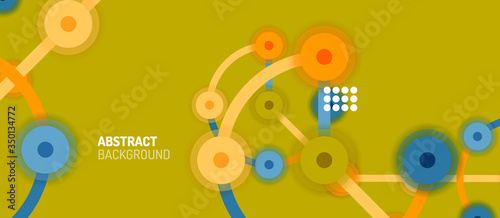 Flat style geometric abstract background, round dots or circle connections on color background. Technology network concept.
