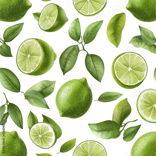 Flat style seamless pattern of lime juice, isolated on white background for creative and modern design use. cutout png