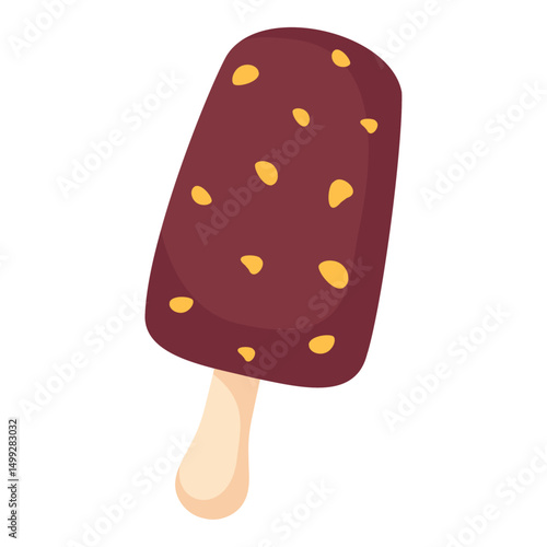 Flat vector chocolate ice cream bar with nuts isolated on white background. Cartoon summer dessert design for packaging, menu, poster, or web
