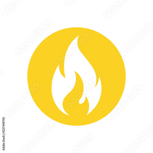 Flat vector design of flame icon on yellow circle