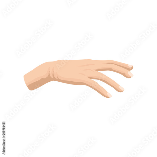 Flat vector icon of woman s or man s hand with classic manicure. Element for advertising poster or banner of beauty salon