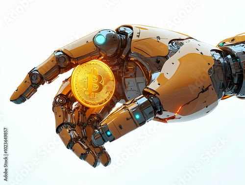 Flat Vector Illustration of a Robotic Hand Holding a Gold Coin - A Fusion of Technology and Wealth in Modern Economy