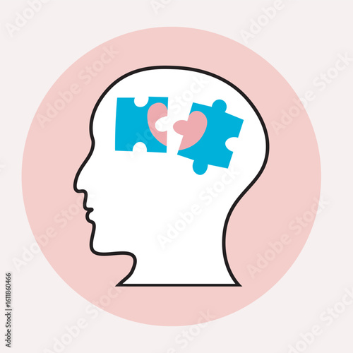 Flat vector illustration showing autism with a human brain, highlighting key symptoms and related disorders in a clean, minimal style. Ideal medical, educational, or awareness use Icon jigsaw puzzle