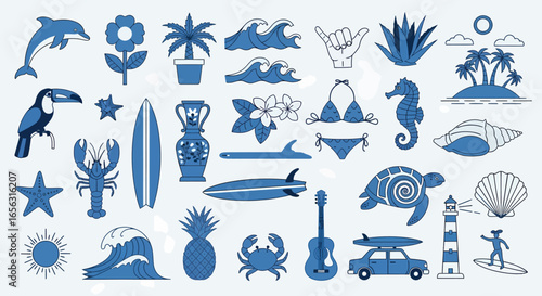 Flat Vector Summer Tropical Beach Icons and Symbols Collection