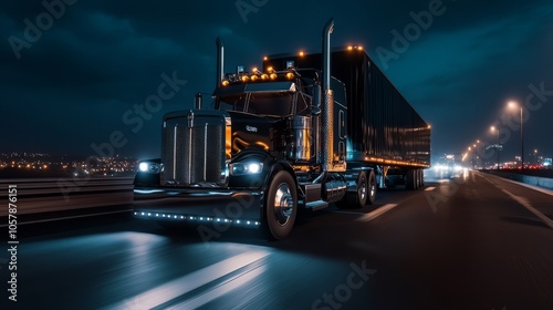 flatbed truck with lights on the road