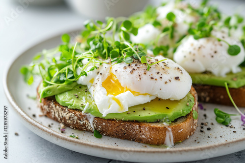 Flatbread with avocado, egg, feta cheese and arugula salad