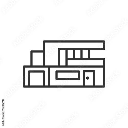 Flathouse, linear icon. modern high-tech house, flat-roofed house. Line with editable stroke