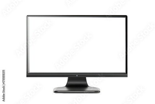 Flat-screen monitor with blank white display. Dark gray bezel and stand