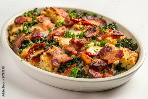 Flavorful Bacon and Kale Strata with Sundried Tomatoes and Cheese