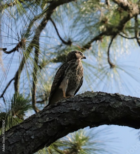 Fledgling Red Shouldered Hawk Gazes at the World in Wonder