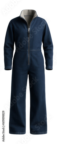Fleece-lined denim jumpsuit with front zipper and wide leg silhouette