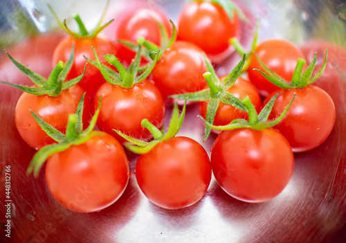 ボウルに入った新鮮採れたてミニトマト Flesh cherry tomatoes in a bowl