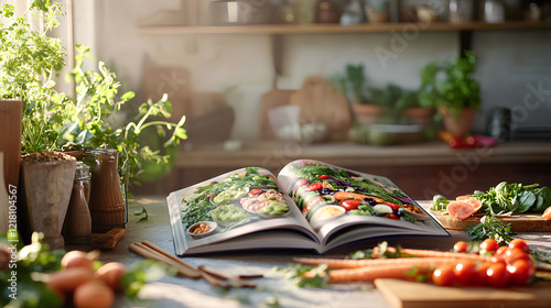 Flexitarian Cookbook with Plant-Based and Lean Protein Recipes Surrounded by Fresh Produce