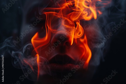 Flickering flames with rising fumes create an eerie atmosphere, accompanied by smoky residue.