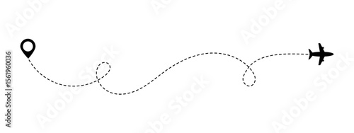 Flight, airplane, path travel route with start point and dash line trace for plan