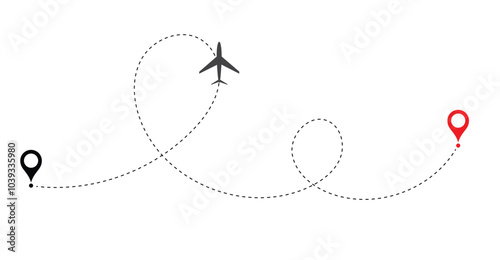 flight path of the aircraft from the point of location along the dotted line, Airplane line path vector travel line. plane travelling from start point to end point with dotted line