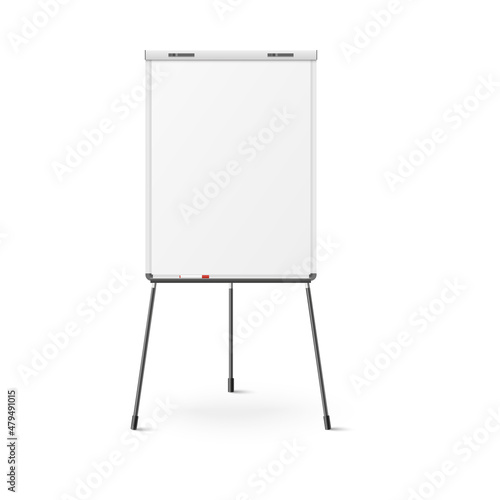 Flip chart with blank papers on tripod, realistic vector illustration isolated.