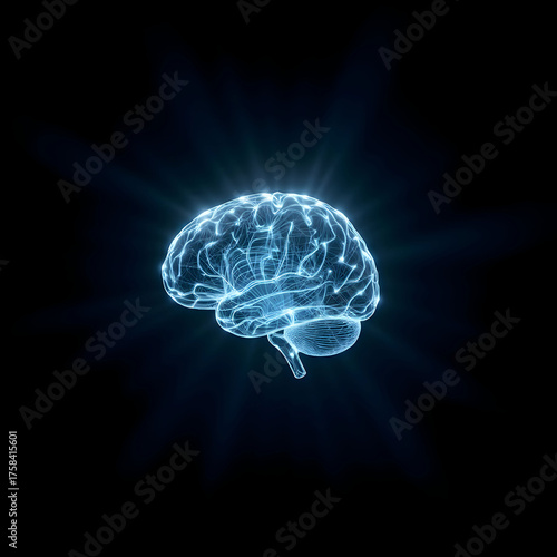 Floating Artificial Intelligence Brain with Glowing Circuits Futuristic Technology Concept, Neural Network Visualization, and Digital Innovation Illustration Design"