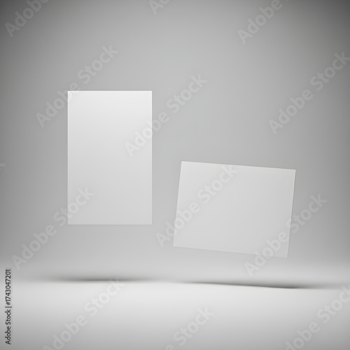 Floating Blank Cards Mockup in Vertical and Horizontal Orientation on Gray Background