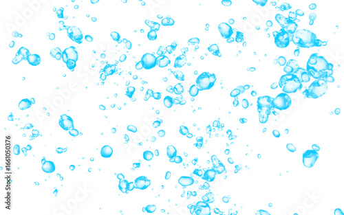 Floating blue water bubbles background. Isolated effervescent soda fizz PNG clip art on a transparent background for a fresh beverage ad or underwater design.