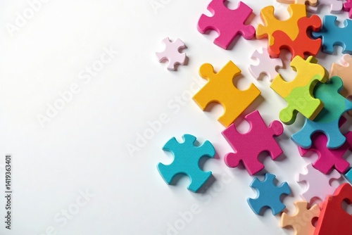Floating colorful puzzle pieces against white, challenge, art, picture