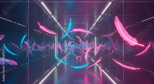 Floating Feathers in Abstract Tunnel – Artistic and Surreal Composition