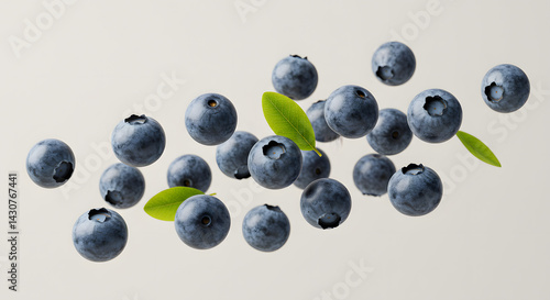 Floating Fresh Blueberries Soft Lighting Clean Background Ample Copy Space