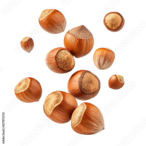 Floating Hazelnuts High-Resolution Image, Isolated on Transparent Background, Food Photography, Nut Composition, Hazelnut, Food, Nuts