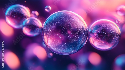Floating iridescent spheres, vibrant background, abstract art, design element