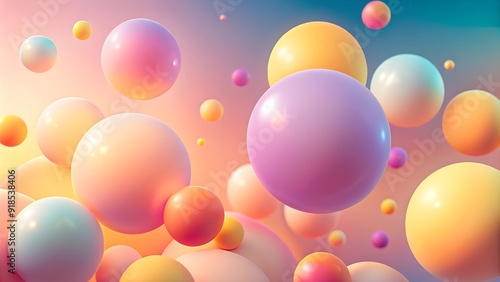 Floating pastel-colored spheres in abstract gradient background, surreal 3D rendering