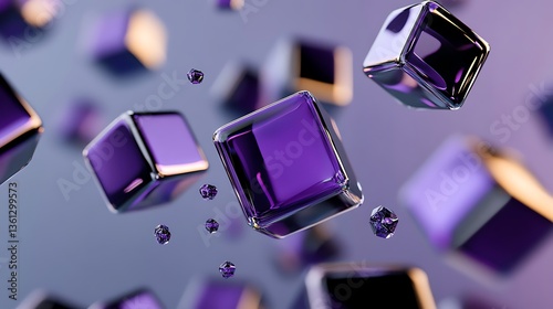 Floating Purple Glass Cubes: A 3D Rendered Abstract Scene AI Generated
