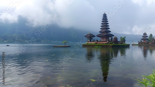 Floating Ulun Danu Beratan Temple on Scenic Lake Beratan in Indonesia