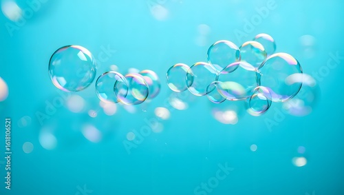 Floating Water Bubbles Background in Blue Liquid for Hygiene Concept