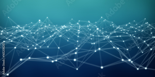 Floating white and blue dot network 3D rendering