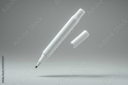 Floating White Marker Pen with Cap Slightly Ajar on Light Grey Background