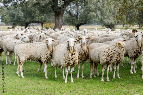 Flock of sheep grazing