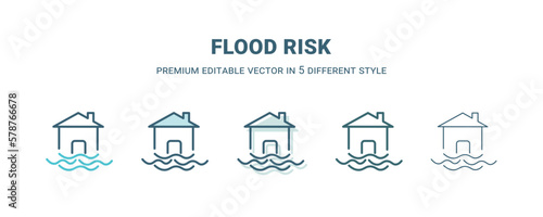 flood risk icon in 5 different style. Outline, filled, two color, thin flood risk icon isolated on white background. Editable vector can be used web and mobile