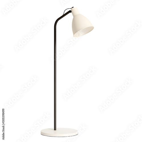Floor lamp. A tall floor lamp stands against a dark background, its white shade poised to cast light. Minimalist design meets functional illumination.
