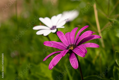 Flor rosa y flor blanca horizontal