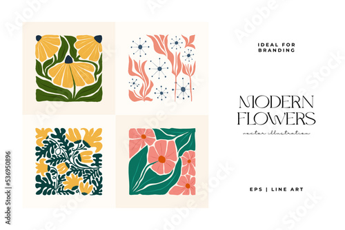 Floral abstract elements. Botanical composition. Modern trendy Matisse minimal style. Floral poster, invite. Vector arrangements for greeting card or invitation design