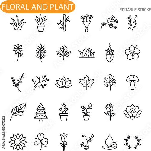 Floral and Plant Line Icons Editable Stroke Vector Graphics