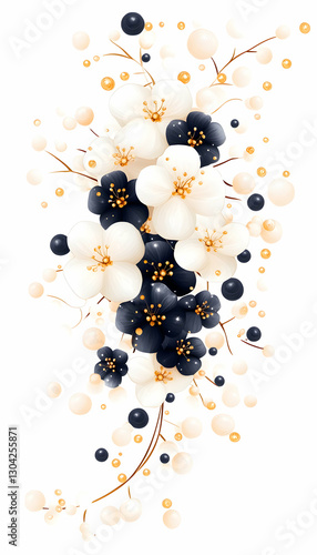 Floral arrangement black and white flowers cascade on a clean, bright background