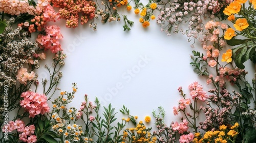 Floral arrangement in soft pastel colors creating a heart shape on a blank background