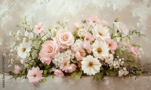 Floral arrangement with soft pink and white flowers on textured background for special occasions