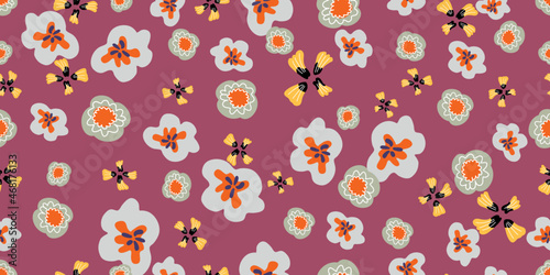 Floral art, Flowers and leaf Seamless pattern, Vector illustration.