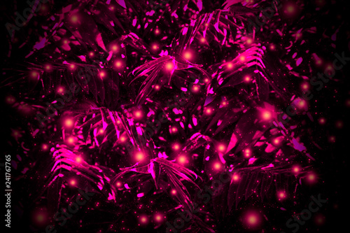 Floral background in neon color. Background macro grass, blurred bokeh, neon light. Nature