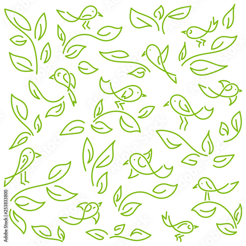 Floral background with funny little birds. Vector.