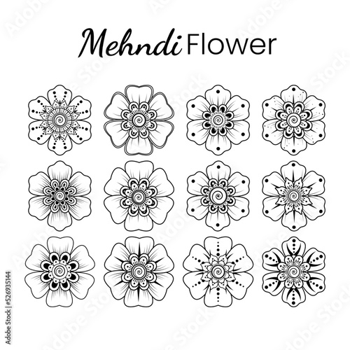 Floral Background with mehndi flower. Decorative ornament in ethnic oriental style. Coloring book.