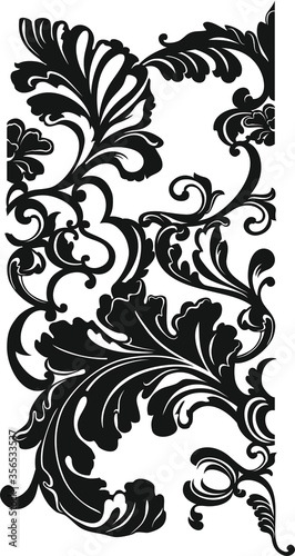 Floral black and white pattern in leaves and flowers pattern